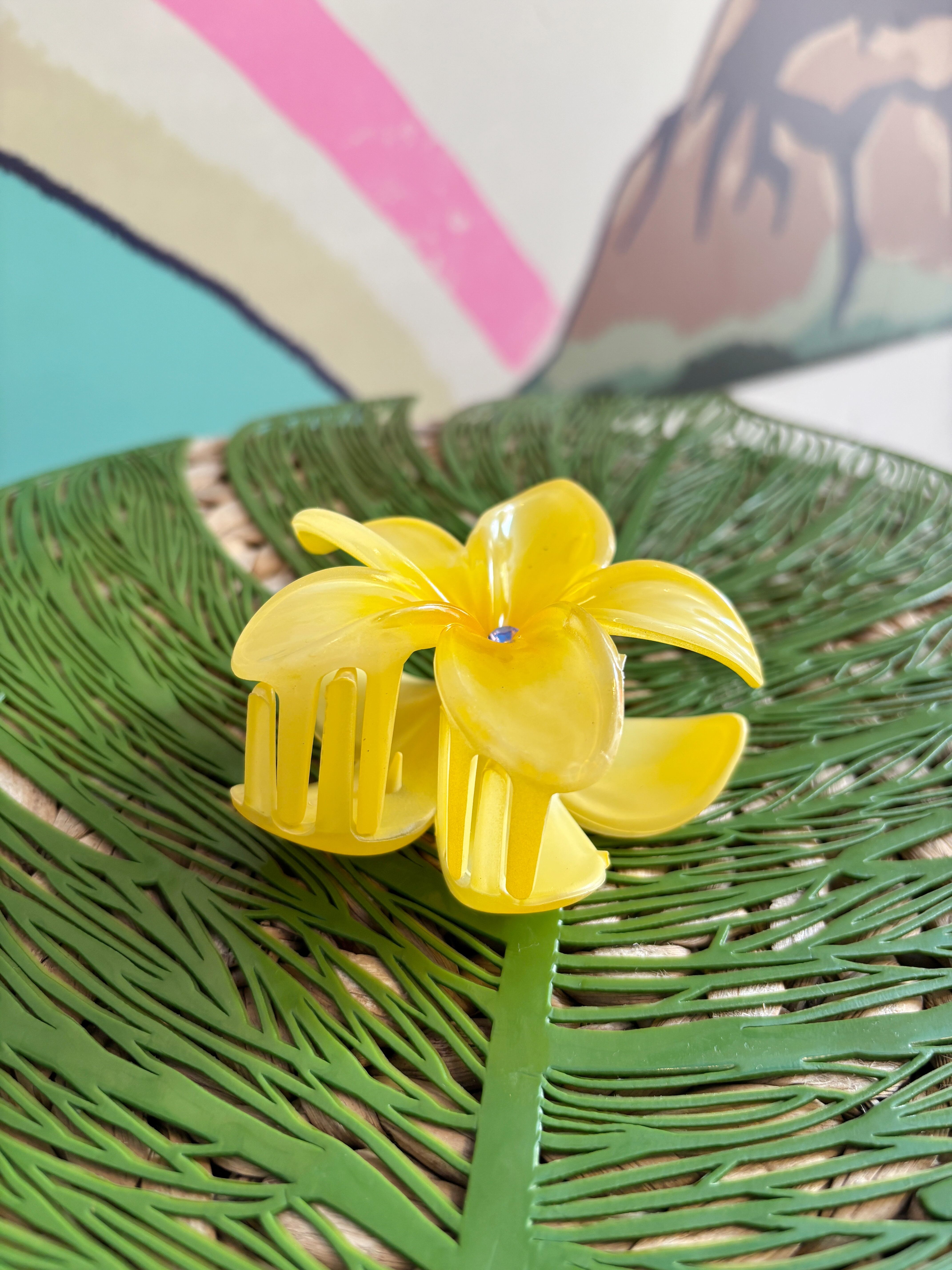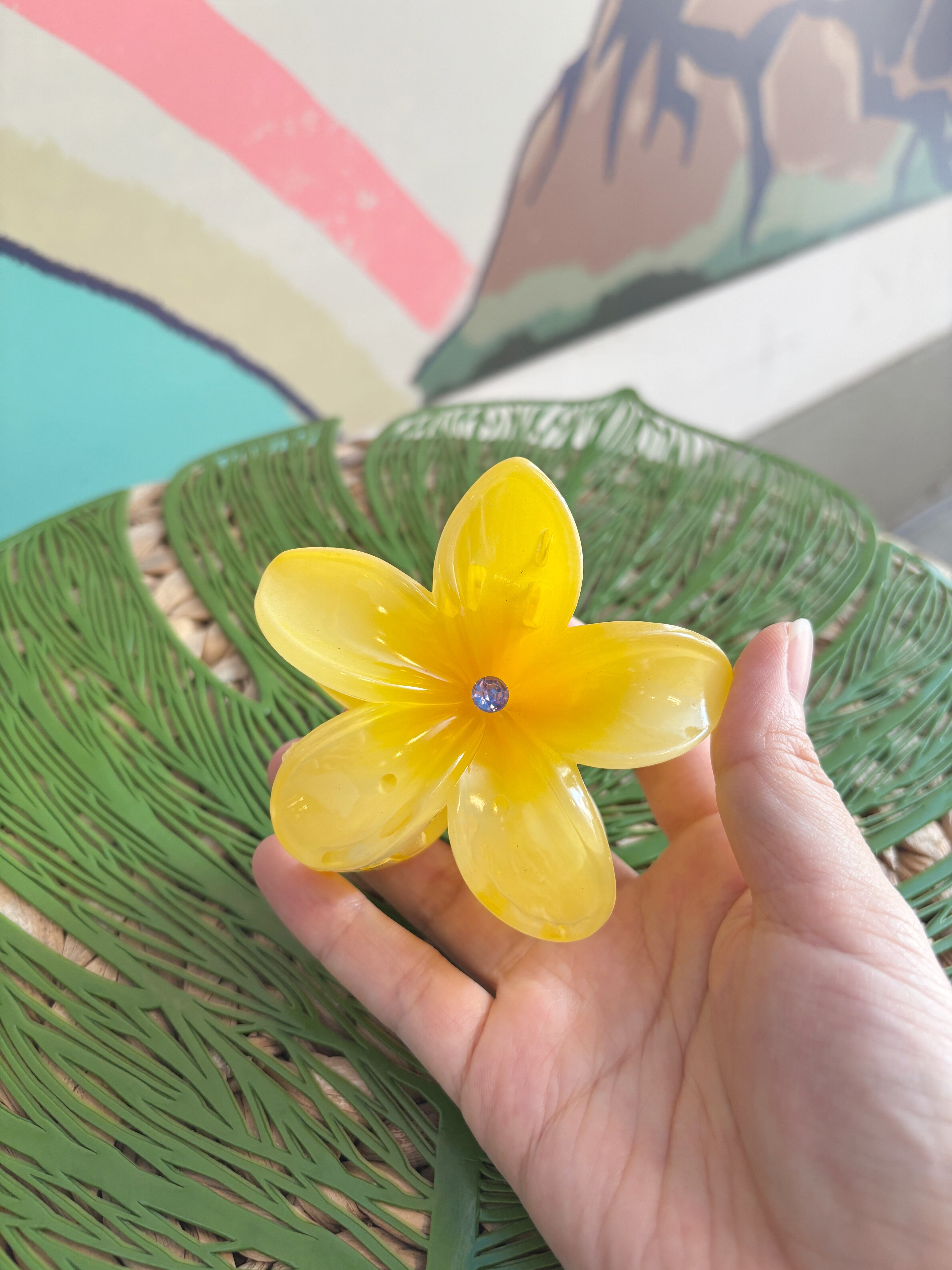 プルメリアヘアクリップ フラレッスンにも! ハワイ好きのあなたに ハワイアンな髪留め イエロー