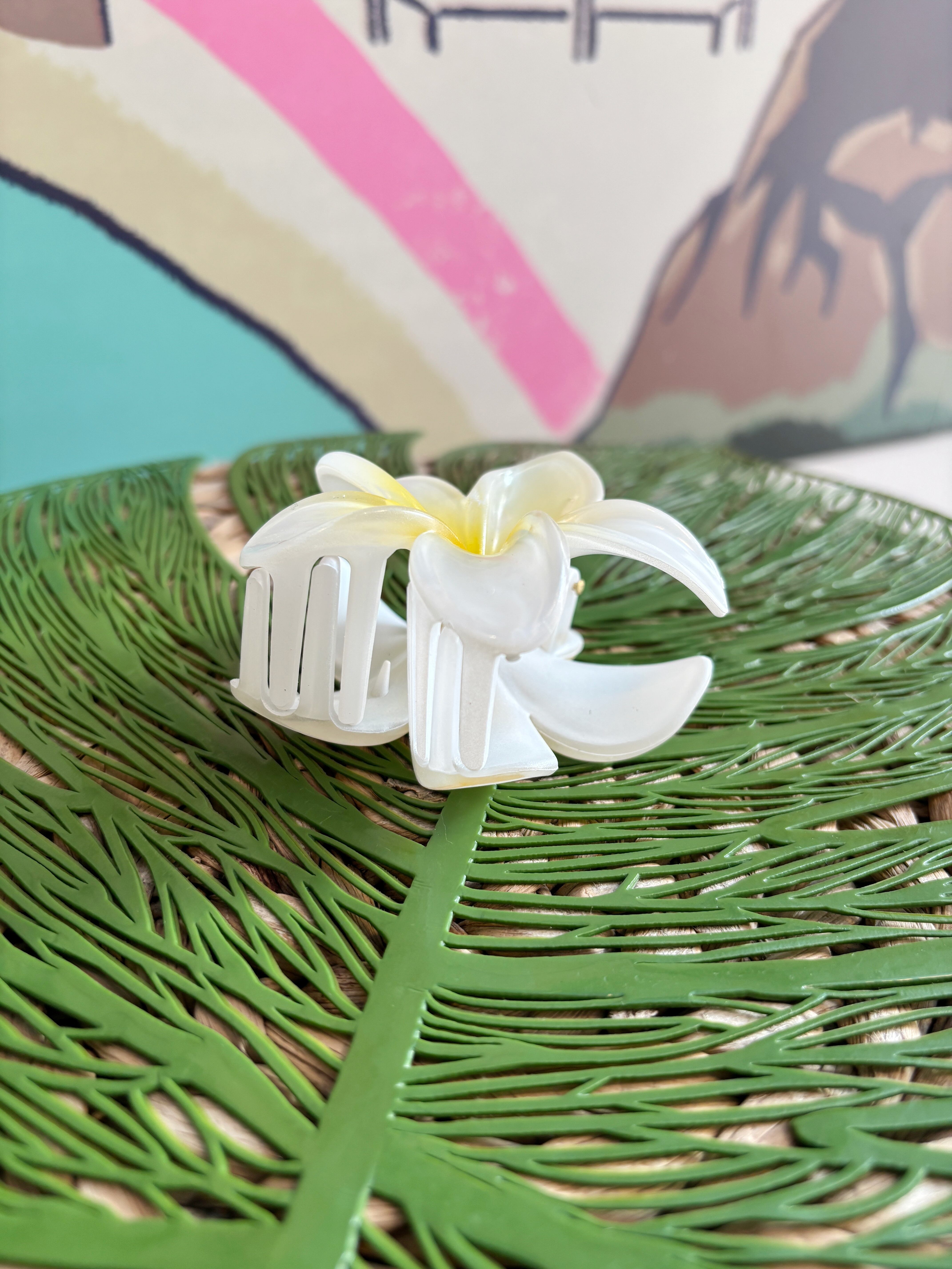 プルメリアヘアクリップ フラレッスンにも! ハワイ好きのあなたに ハワイアンな髪留め ホワイト