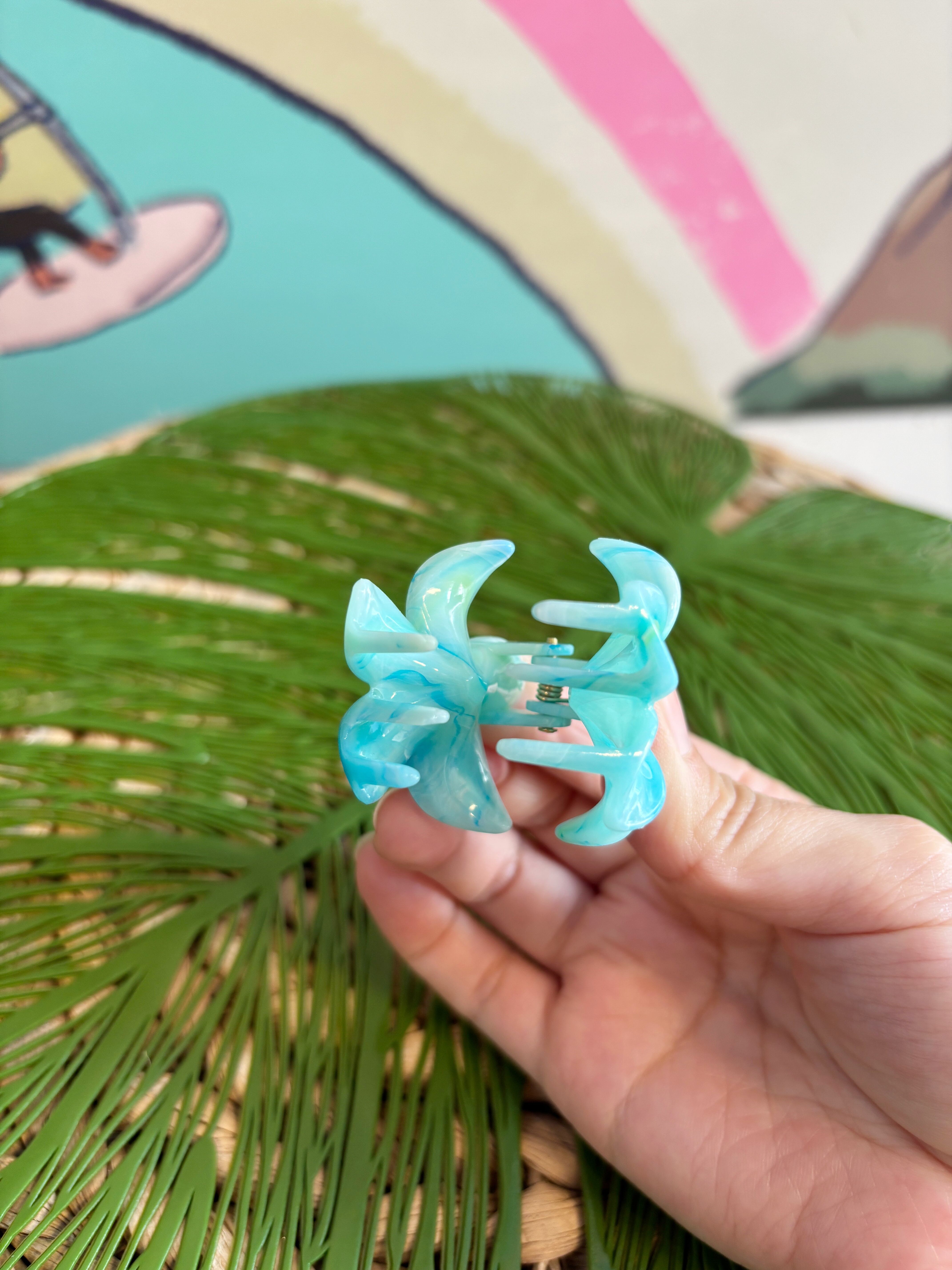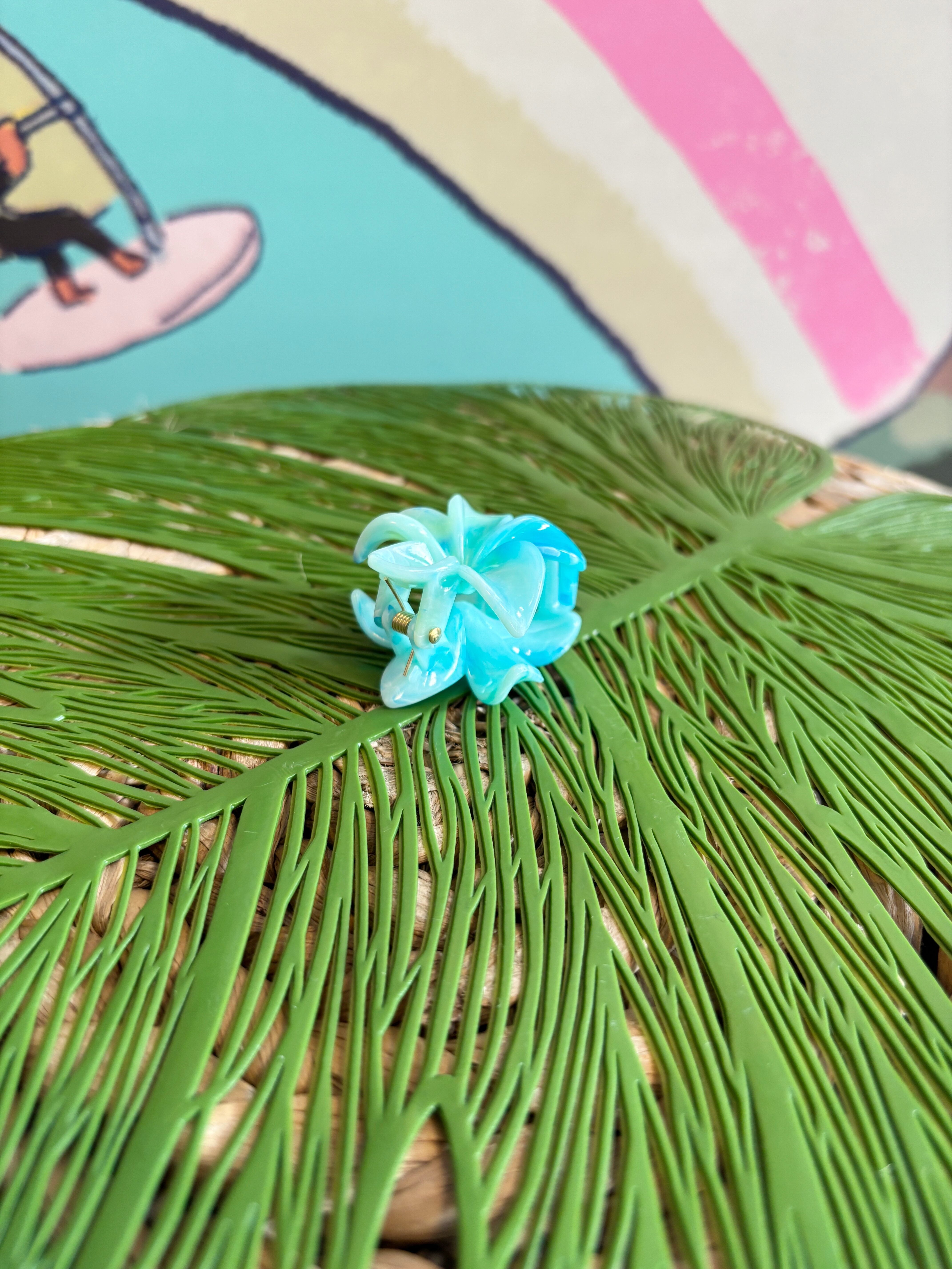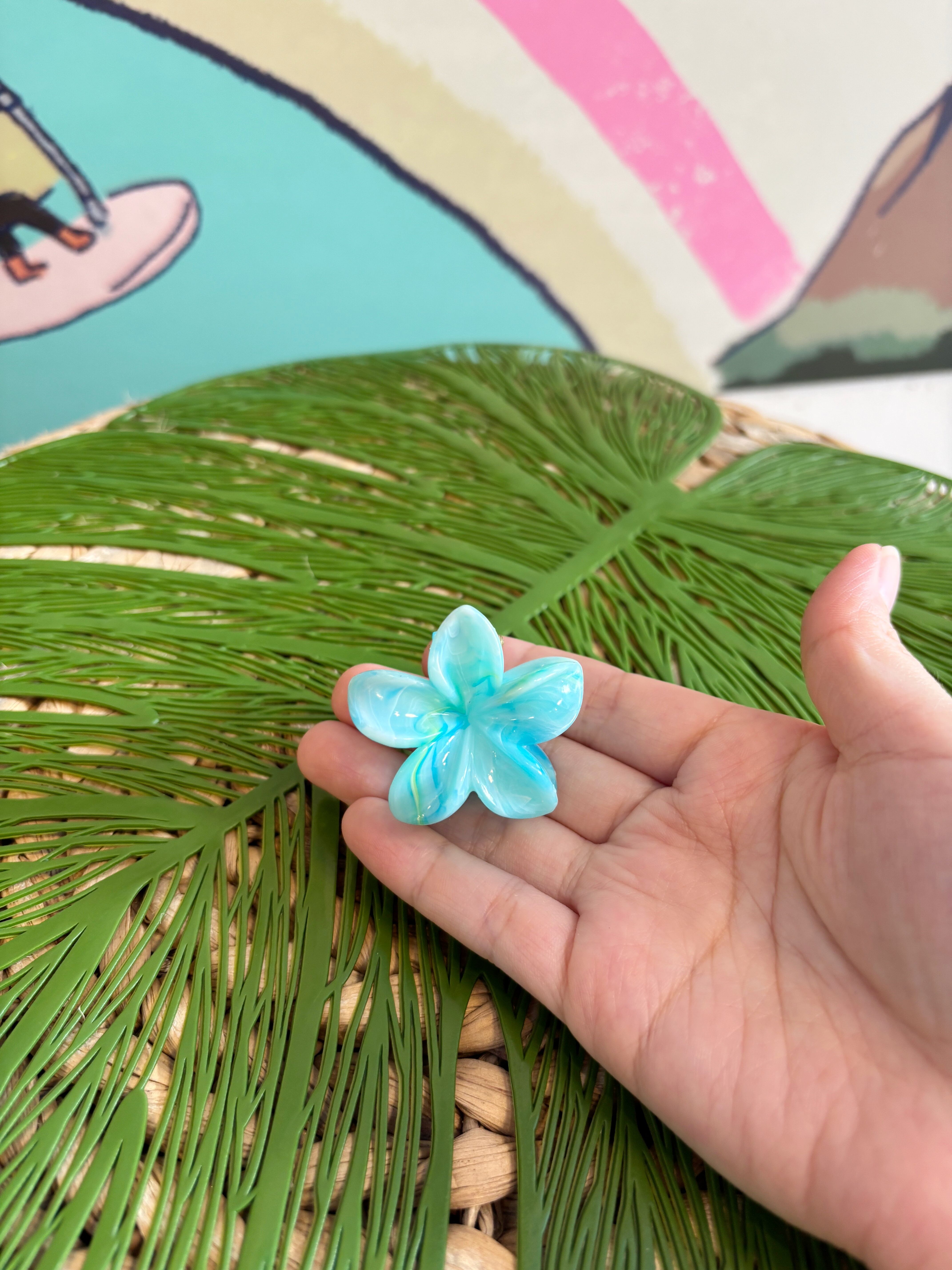 プルメリアヘアクリップ フラレッスンにも! ハワイ好きのあなたに ハワイアンな髪留め マーブルブルー Sサイズ