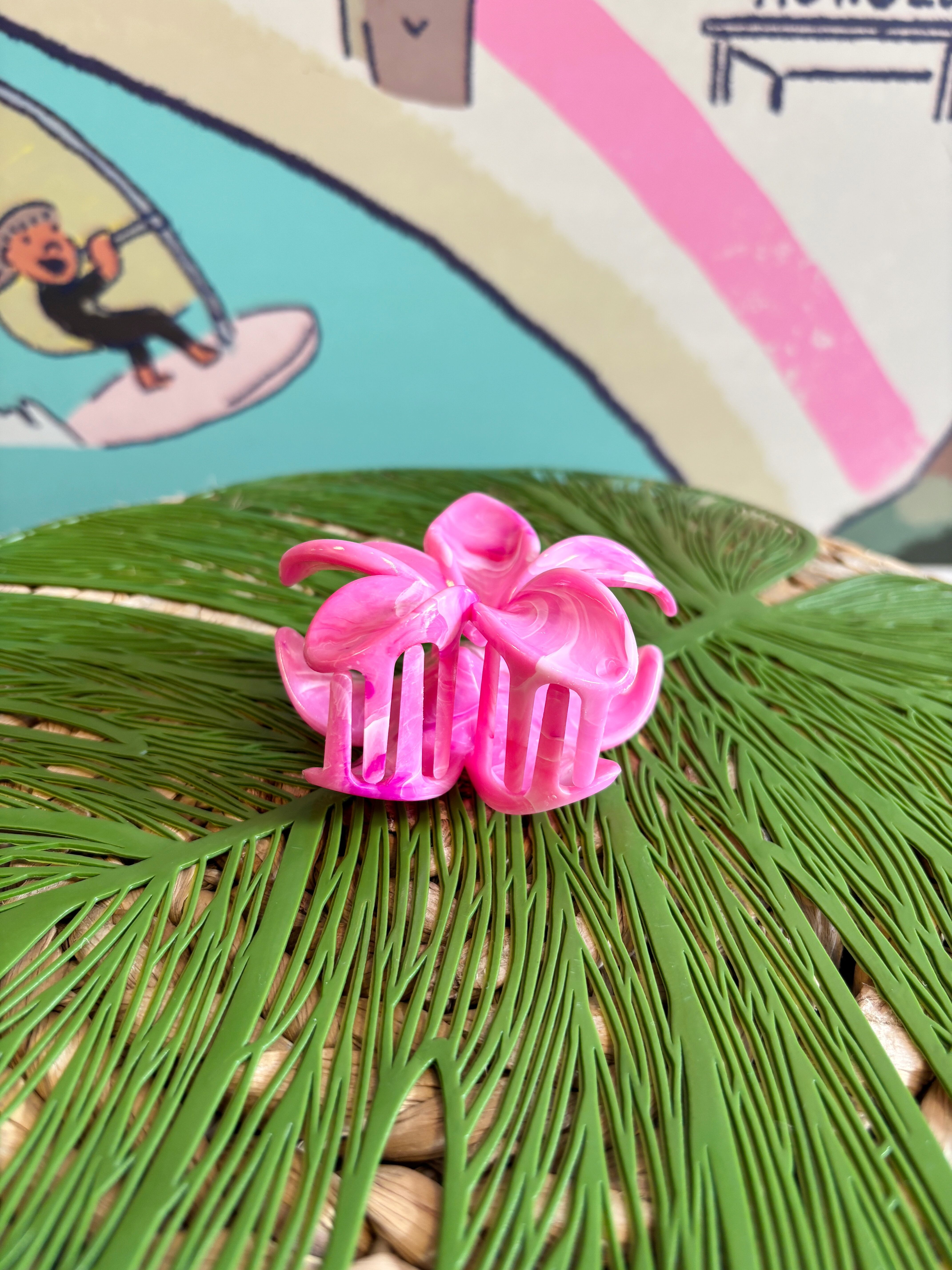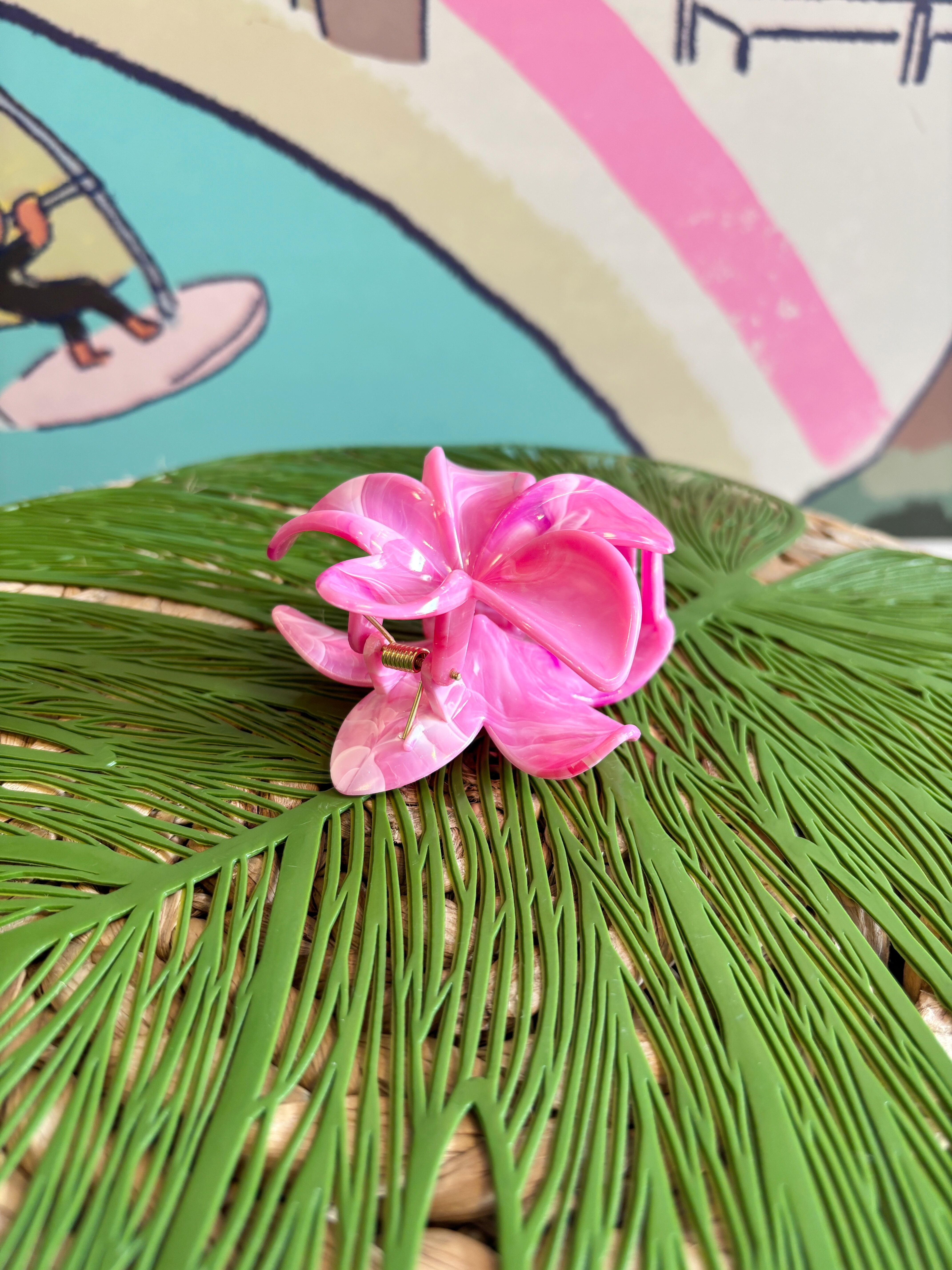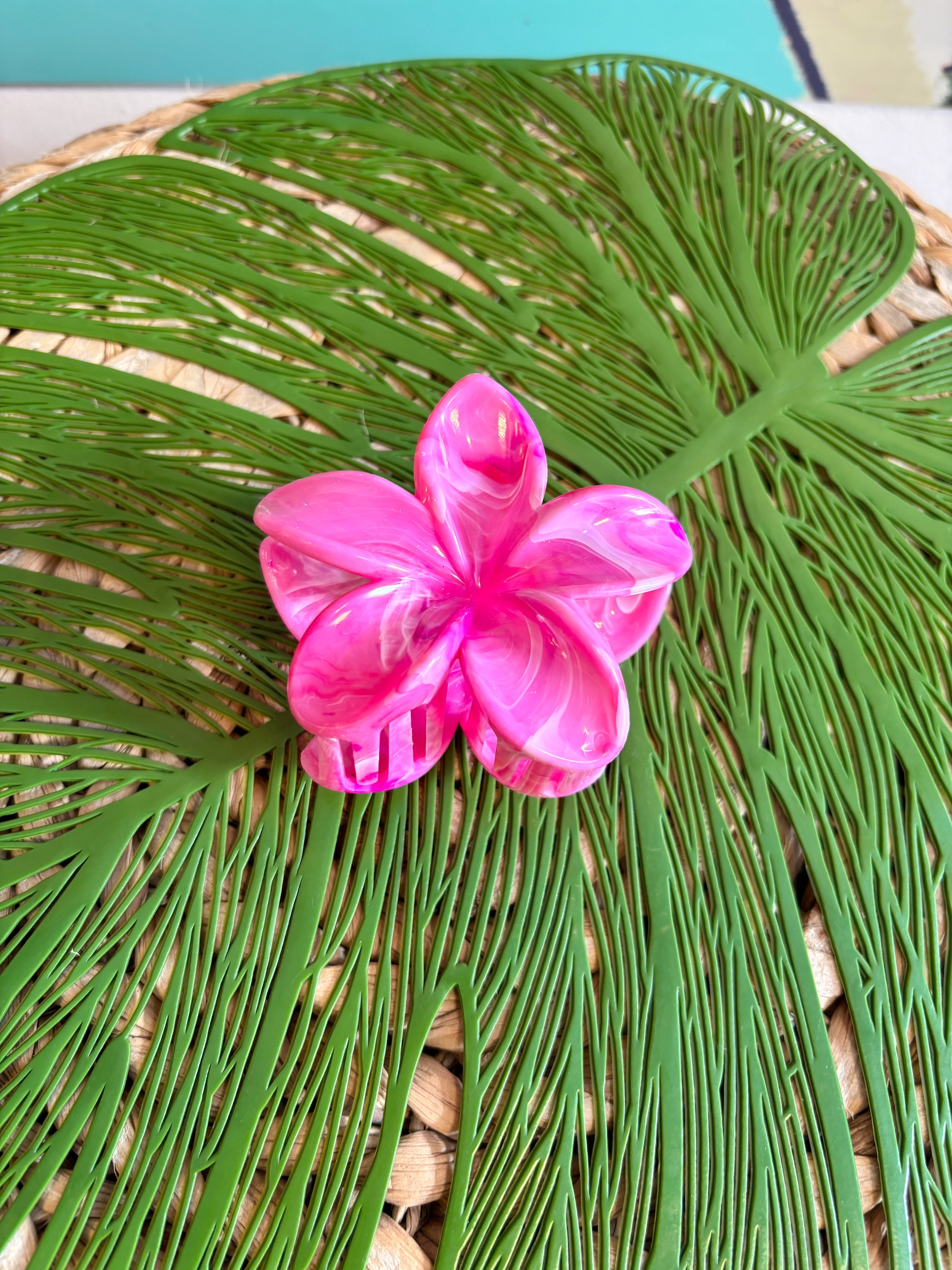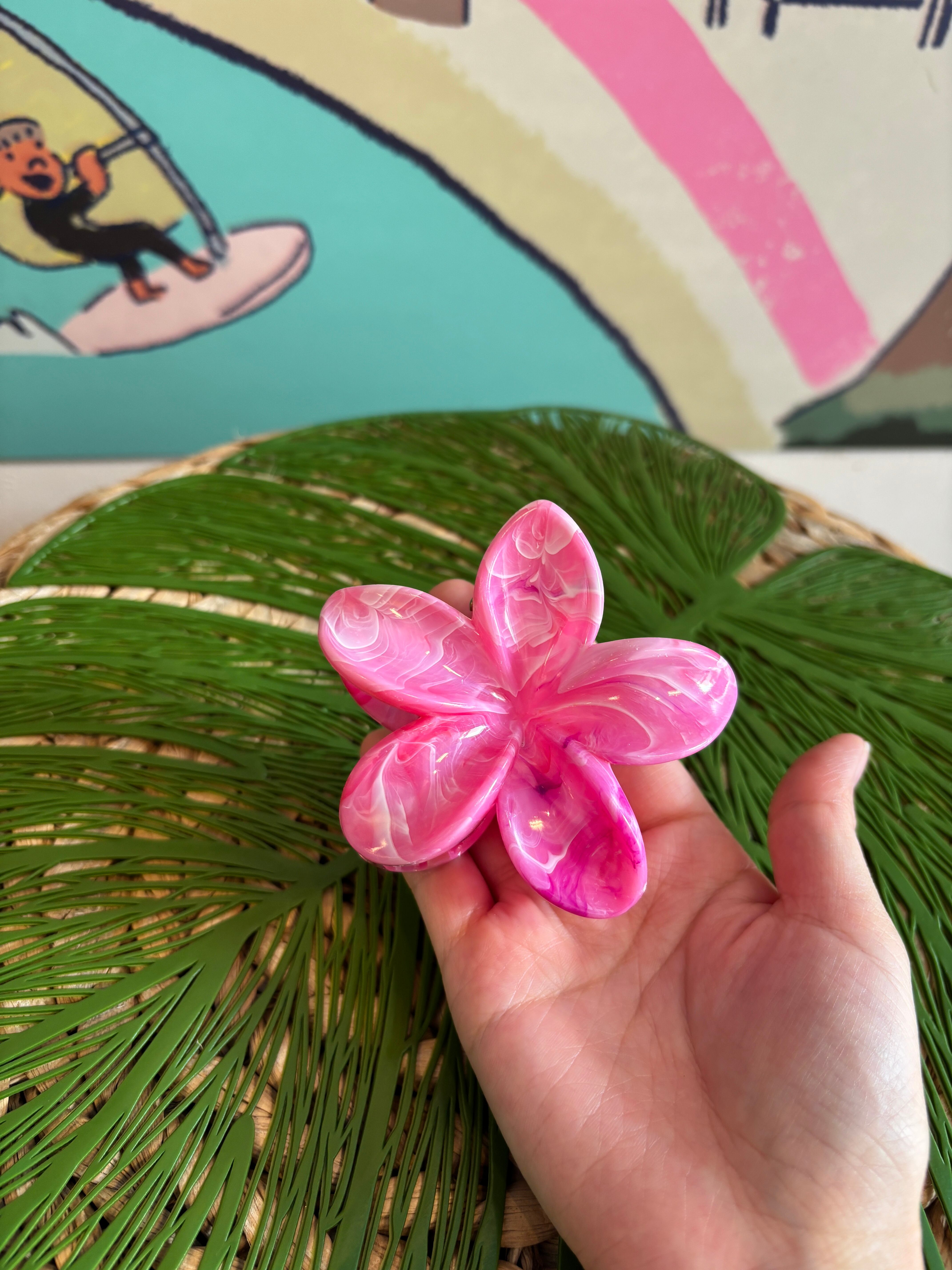 プルメリアヘアクリップ フラレッスンにも! ハワイ好きのあなたに ハワイアンな髪留め マーブルピンク Lサイズ