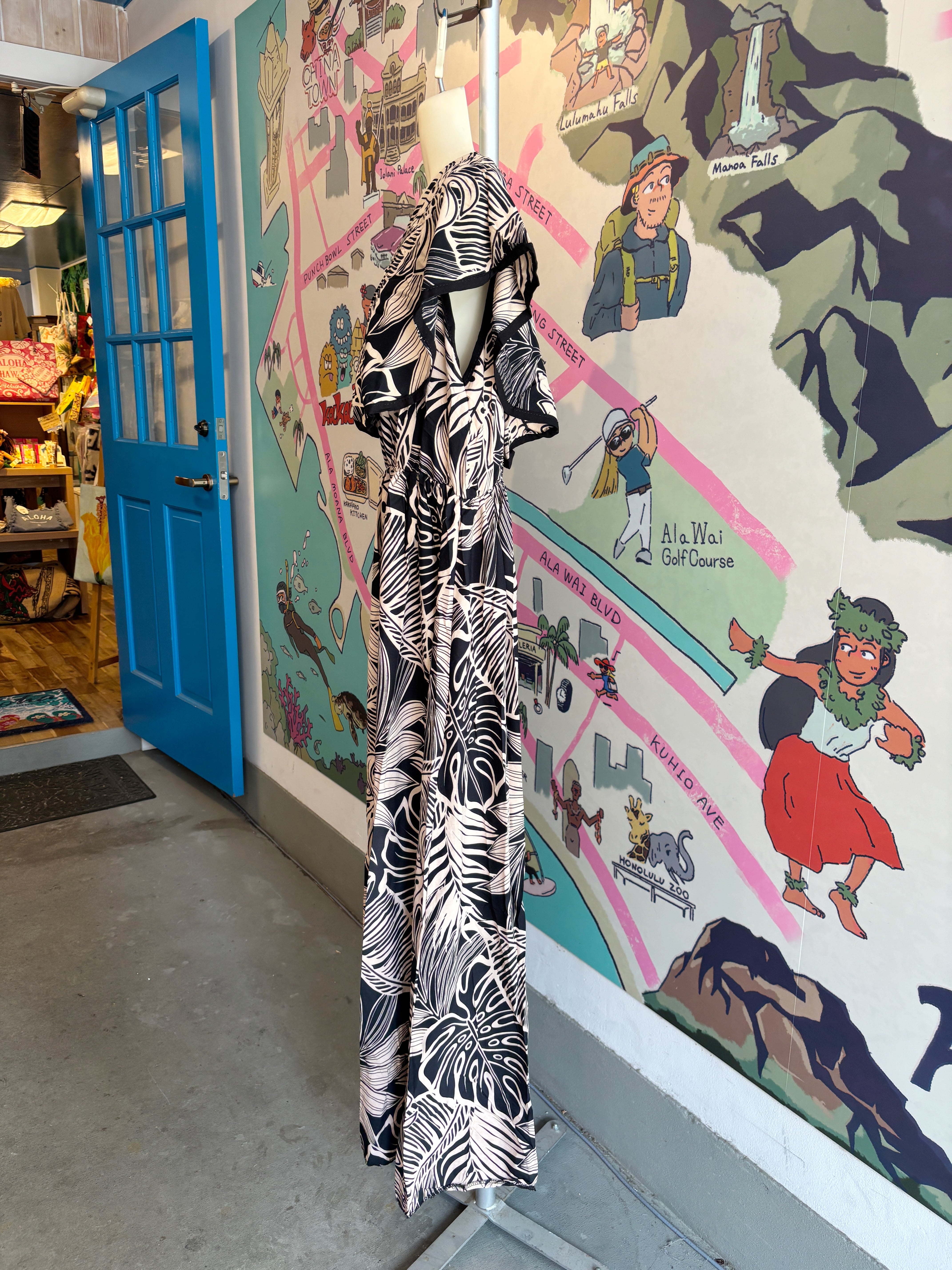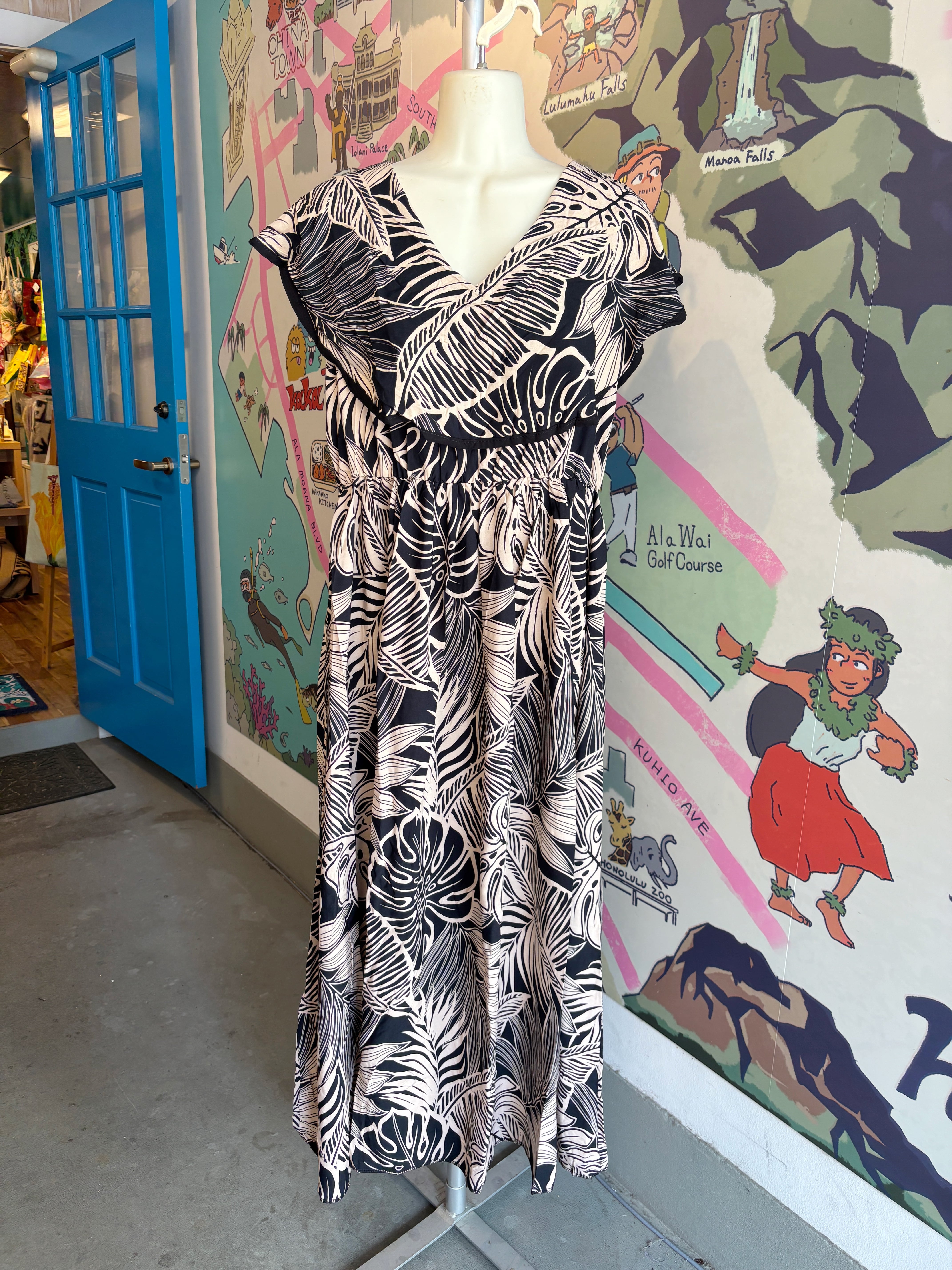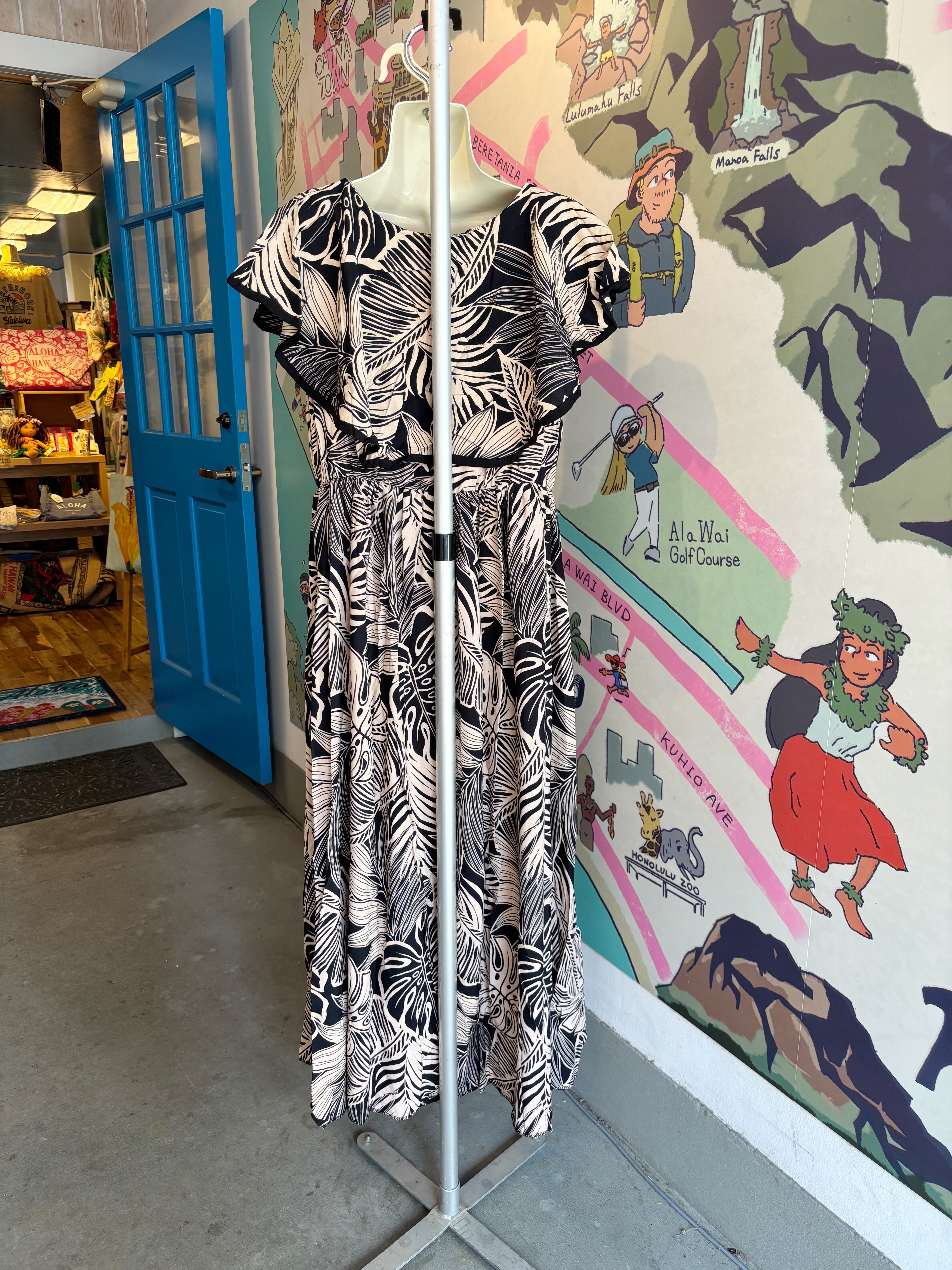 フリルがついたハワイアンなワンピースドレス。