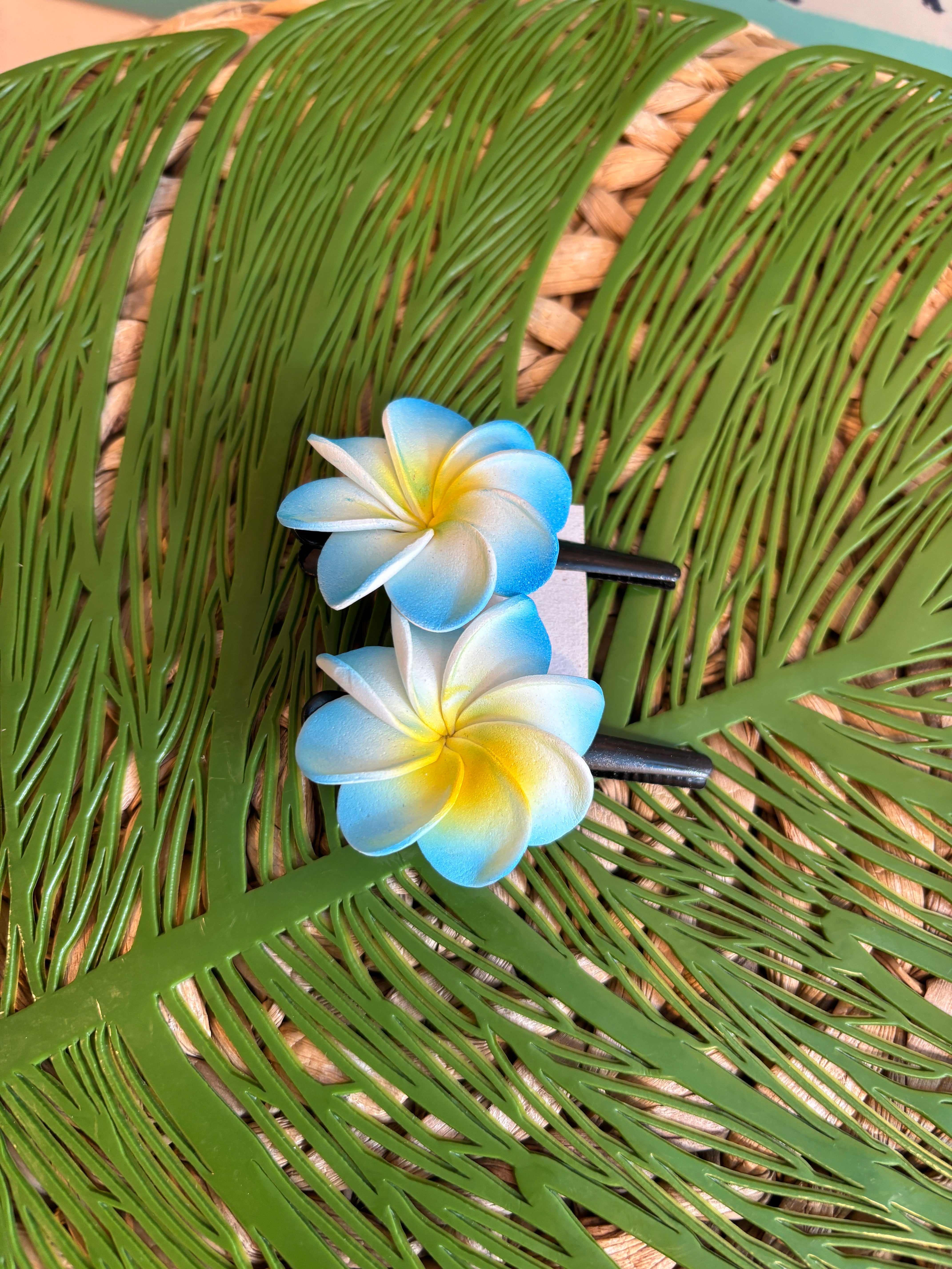【ハワイアン ヘアクリップ】プルメリア ブルー 2本セット♪