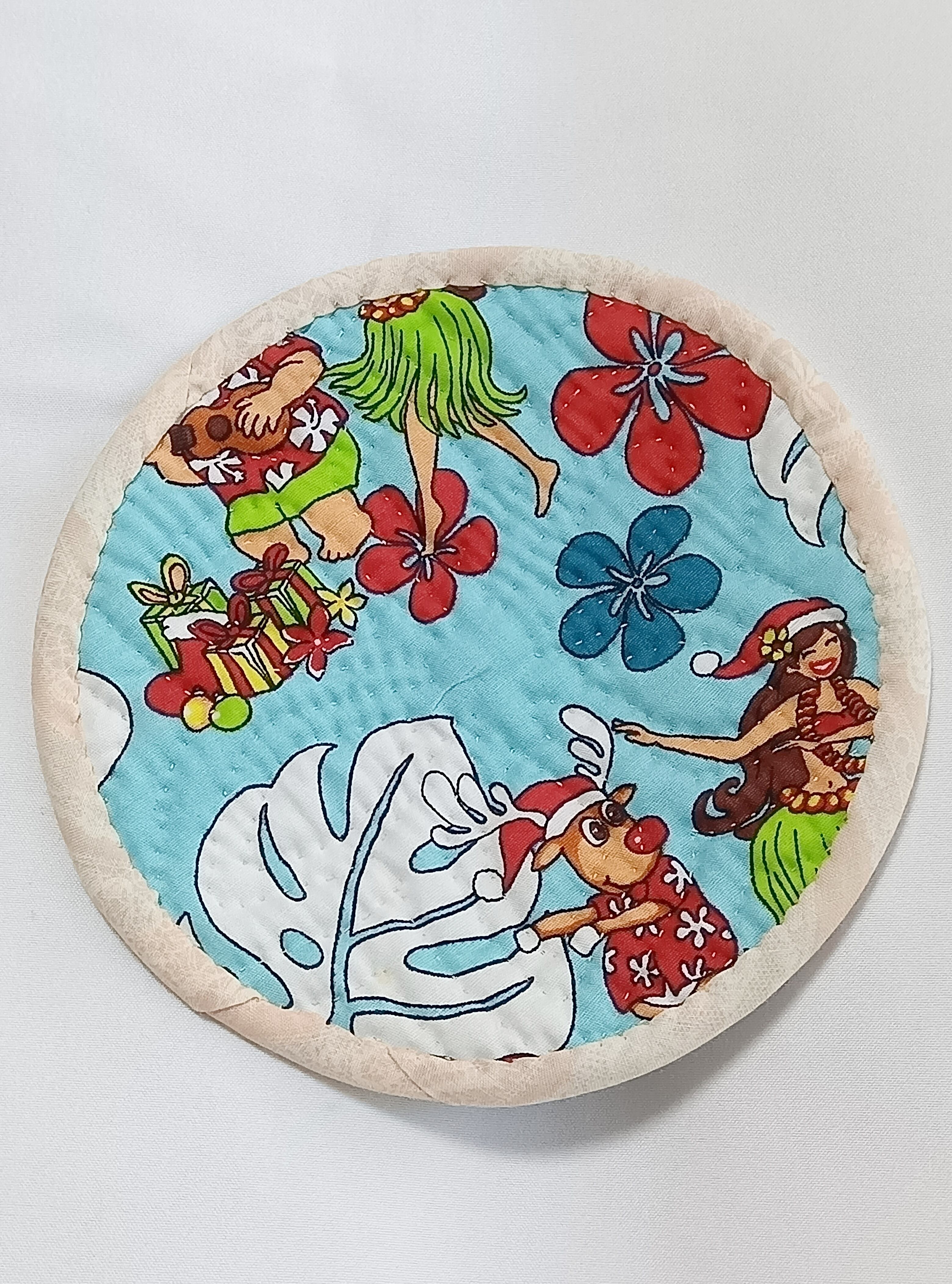 【HawaiianQuilt Peach】ハワイアンキルト コースター ティアレ ハンドメイド 手縫い