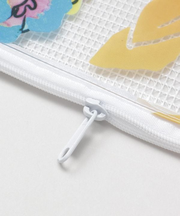 しっかりとした生地で、中身も見える便利な大きめのクリアメッシュポーチ。