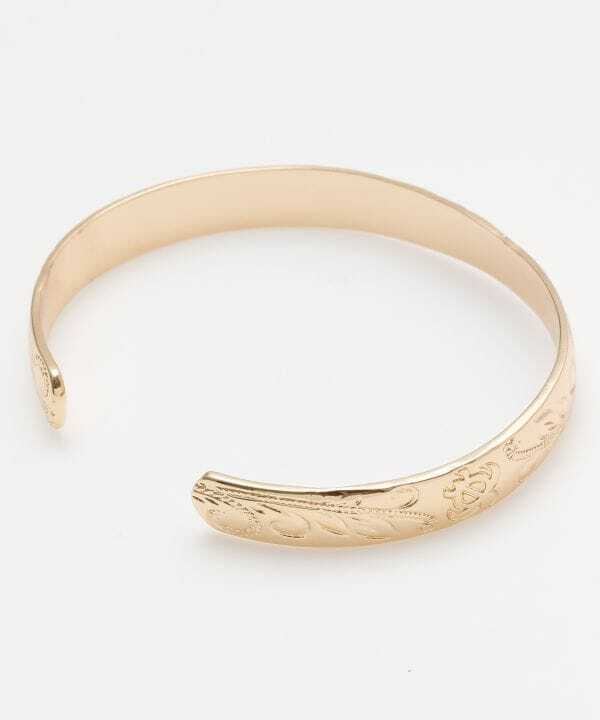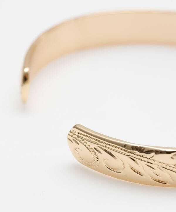 全体にハワイアンジュエリー調の彫が施され、このバングル1つでコーディネートが決まります。
