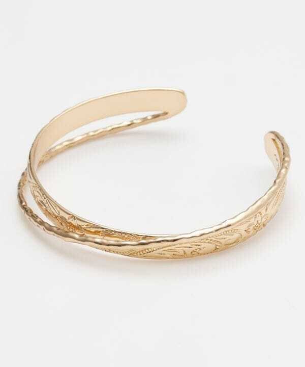 ハワイアンジュエリー調のバングルに華奢なバングルを組み合わせた様な重ね着けテイストのデザインです。