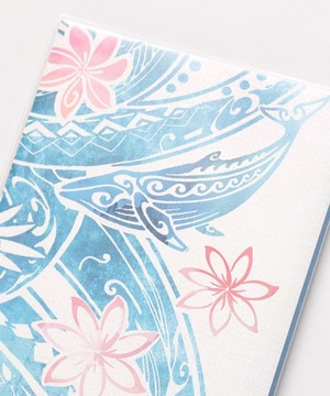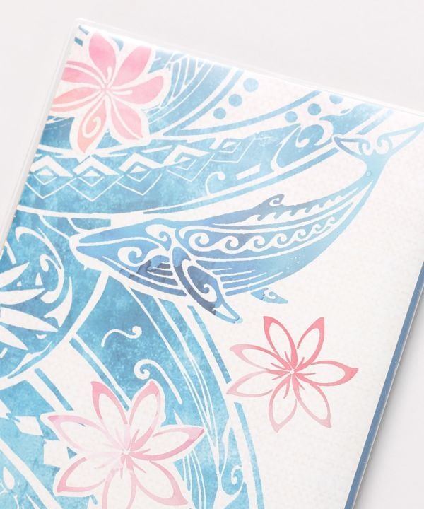 クラシックで上品なポリネシアントライバルの中をホヌ(ウミガメ)が泳いでいるような柄の手帳。