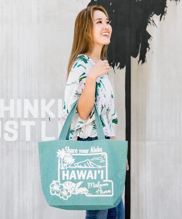 ダイアモンドヘッドのほかにもヤシの木、ハイビスカスもプリントされていて、トレンド感満載のアロハトートバッグ!