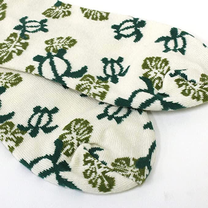 ホヌとモンステラのイラストが散りばめられたくるぶし丈の靴下。