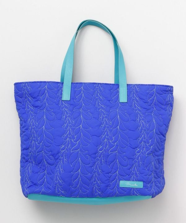 香り高い花々のレイをキルティングで表現した生地をつかったトートバッグ。
